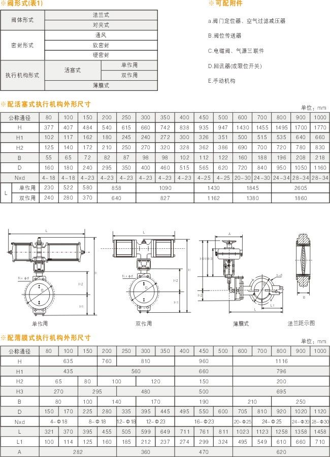 (2)智能气动蝶阀采用电-气阀门定位器,以电信号和压缩空气为动力,接受控制系统输入的4-20mA DC电流信号,由调节器将压缩空气,转换成气源压力信号输入输出,改变阀板的旋转角度(0-90°任意角度),具有较好的调节控制流量等参数。