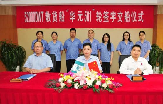 6月16日下午,扬子江船业集团子公司江苏新扬子造船有限公司为上海华元航运有限公司建造的第1艘52000DWT内贸散货船“华元501”轮顺利签字交付。