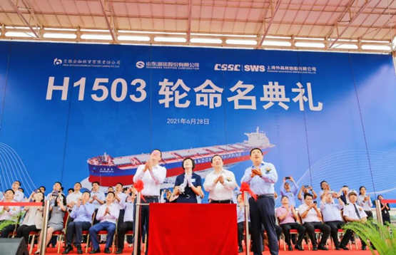 6月28日,中国船舶集团旗下上海外高桥造船有限公司为山东海洋集团所属山东海运股份有限公司建造的十艘18万吨好望角型散货船系列中的最后一艘——“山东德泰”轮顺利命名交付。至此,外高桥造船上半年累计交船12艘(座)/175.2万载重吨,分别完成公司年度交船计划的75%和64%,承接新船订单26艘/351.7万载重吨,超额完成原定的全年经营任务,提前实现“时间过半、任务过半”的双过半目标,奏响了完成全年经营生产任务的强音符,为中国共产党成立100周年献上了贺礼,彰显了大型央企在党的全面领导下,在经济建设领域承担起的特有责任和担当。