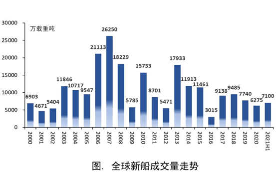 据不完全统计,2021年上半年全球累计成交新船订单约950艘、7100万载重吨,同比大涨近180%。从细分船型市场看,以载重吨计,集装箱船订单占比超过50%,油船订单占比约23%,散货船订单占比约16%,液化气船订单占比约7%据统计配套船用阀门生产厂家订单有所增加。