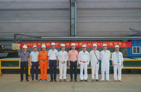 7月7日,由扬州金陵建造的7990吨不锈钢化学品船顺利开工。船东代表、船级社代表、扬州金陵7990项目负责人出席了开工仪式。