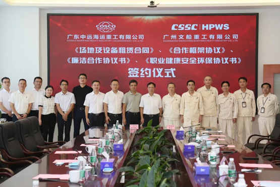 7月9日下午,广东中远海运重工与中船黄埔文冲在麻涌厂区举行《场地及设备租赁合同》、《合作框架协议》、《职业健康安全环保协议书》、《廉洁合作协议书》签署仪式,进一步推动双方合作发展走深走实。