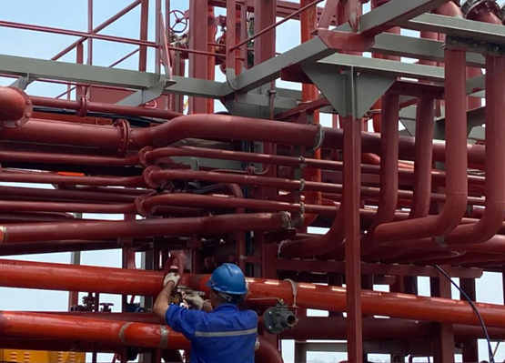 由于国外疫情影响,Framo液压管供应滞后,原计划45天的安装周期无法满足系泊实验需求,为了优质高效完成Framo液压管安装及超高压密试工作,船舶总装部成立了专项攻关小组,研究学习其他船厂建造方法,不断优化施工流程。