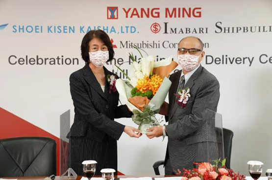 由今治造船为阳明海运量身打造的11,000TEU级集装箱船“帆明”轮(YM Travel)于今日在今治造船广岛船厂举办新船命名暨交船典礼仪式,典礼由今治造船主持,透过线上视讯方式连线阳明海运台北办公室,同时邀请永丰金控董事长陈思宽女士担任「帆明轮」之命名人,为新船献上一帆风顺、班班满载的圆满祝福。