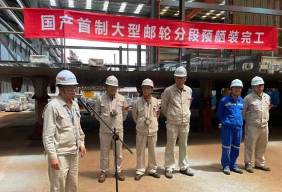 7月23日,邮轮项目H1508船CS18C、CS19C两个分段舾装报验完成,宣告了国产首制大型邮轮分段预舾装工作全部结束。外高桥造船副总经理周琦及相关邮轮参建人员参加了完工仪式。
