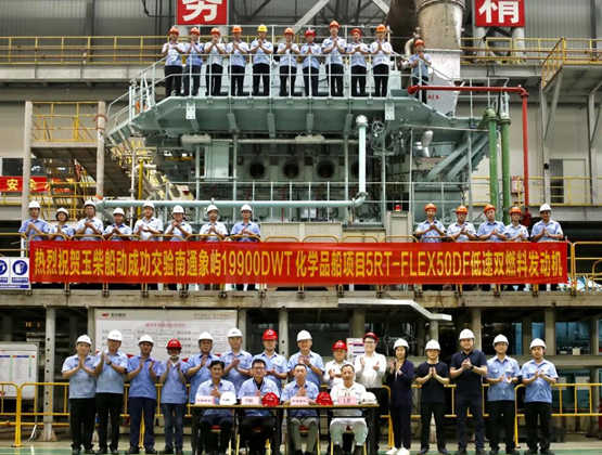 玉柴船动是全球首家生产WinGD低速低压双燃料发动机的主机厂家,此前已为国内外用户成功交付了14台RT-flex50DF发动机,分别安装于LNG船、化学品船、集装箱船等。本次成功交验是玉柴船动双燃料发动机可靠制造技术的再一次体现。