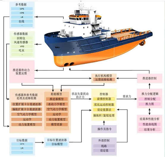 DP系统是一种多学科高度融合的技术密集型复杂系统,它采集全船关键数据,通过控制船舶各推进器,使船舶依照操作者的指令循迹、保持位置或艏向,广泛应用于平台支持船、远洋科考船、海洋钻井船、布缆船、救援船、拖船等特种领域。