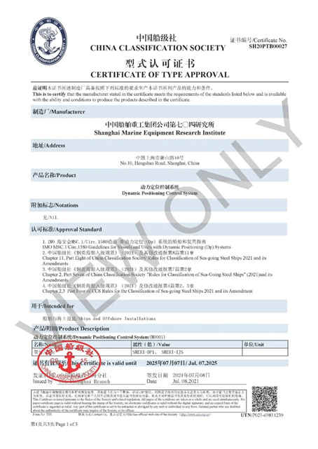 为实现国产自主,并在日益激烈的市场竞争中取得先机,2019年初,七〇四所正式开展国产化DP系统CCS型式认可工作。