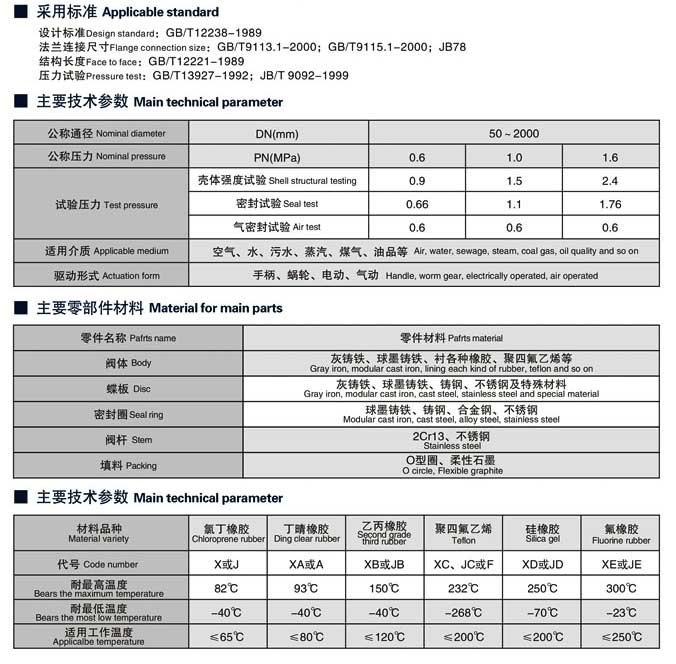 | 蝶板 | 灰铸铁、球墨铸钢、铸钢、不锈钢及特殊材料 |