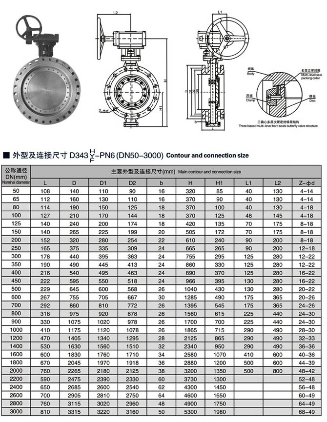 多层次硬密封蝶阀,三偏心多层次硬密封蝶阀相关尺寸图: