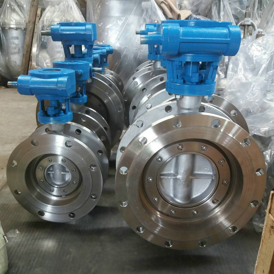 双偏心蝶阀的基础上进一步改良成型的就是目前应用最广泛的双偏心对夹式蝶阀。其结构特征为在阀杆轴心既偏离蝶板中心、也偏离本体中心。双偏心的效果使阀门被开启后蝶板能迅即脱离阀座、大幅度地消除了蝶板与阀座的不必要的过度挤压、刮擦现象、减轻了开启阻距、降低了磨损、提高了阀座寿命。