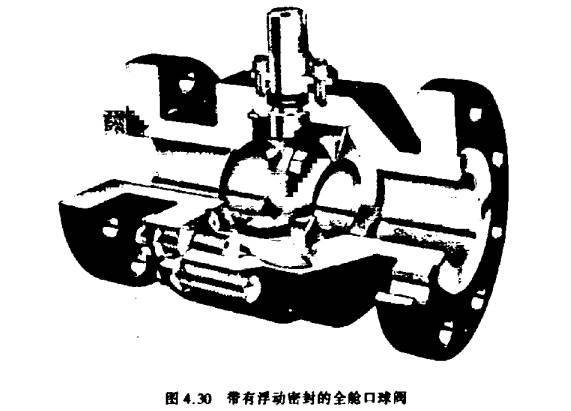 今天采用的两个球阀的基本结构是:全舱口球阀和特性化不锈钢球阀。与手动操作开-关隔断球阀相似,全舱口球阀使用球状球体作为调节元件,球体上镗以与管线内径相同的孔作为特征(图4.30)。当全舱口球阀全部开启时,物流继续无阻碍地通过此孔,这样物流不冲擅调节元件或调芯,产生小的压力降(如果有的话)和极小的工艺淄流。尽管开-关操作是最佳的选用,但全舱口阀门很少用于纯节流工况,因为球体镗孔的尖角边缘会产生噪音、空穴、磨损和增加压力降。