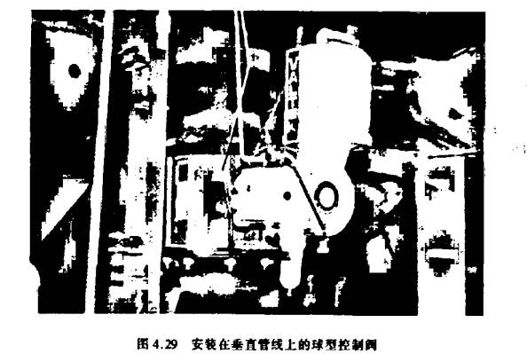 球形控制阀也能很好地适应稀浆工况或含有纤维成分的工艺过程(如木材纸浆)。球形控制阀球体的旋转动作对密封产生剪切动作,在关闭过程中可使工艺介质清洁地分离。相同的工艺在蝶阀或截止阀中(它们直接在工艺物流通道中使用调节元件或阀芯)将被阻塞或粘合。与蝶阀结构相似其特征为直线通过流动。球阎可以安装在垂直管线上(图4.29)以遵免纤维物质或颗粒等物的沉积和损坏。另-方面,截止阀可便工艺介质中较重的物质沉积在截止阀底部(水平管线安装)或沉积在阀体工作台(垂直管线安装)。