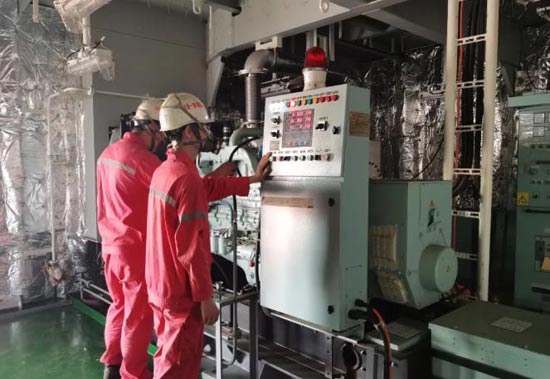 为顺利完成船坞内应急发电机动车的节点目标,外高桥造船调试项目团队在首制船建造经验基础之上,奋力协同机装作业区积极有序组织高效生产,重点强化应急发电机船坞内统筹安装工作;相继完成配电板检查通电、开通监测报警系统及柴、滑油加注工作,为后续码头系泊试验开展提供了有力保障。