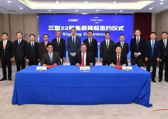 中国船舶集团先后与瑞士地中海航运公司签订系列2.4万TEU和1.6万TEU超大型集装箱船,与加拿大Seaspan签订系列1.5万TEU集装箱船,与中国台湾长荣海运签订系列2.4万TEU超大型集装箱船等。特别是与法国达飞海运集团签订价值逾100亿人民币的共三型22艘集装箱船订单,再次刷新了中国船舶集团承接单笔金额最大的集装箱船订单纪录,并一举提前完成船海经营全年目标任务。