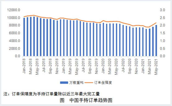 2021年以来,在全球造船市场整体修复的背景下,中国造船企业承接新订单大幅增加,手持订单扭转近年来整体持续下滑态势。据克拉克森统计,截至5月25日,中国船厂手持订单达8198.2万载重吨(3068.7万修正总吨),连续4个月保持正向增长,手持订单保障度达到2.2年,不少船舶交付日期已排至2024年。