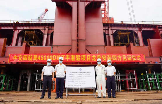 6月1日,航通船业在制造中心举行45000DWT半潜驳龙骨安装四方见证仪式,与四航局、江门海事局、中国船级社珠海分社代表共同签署了《四方见证》文件。